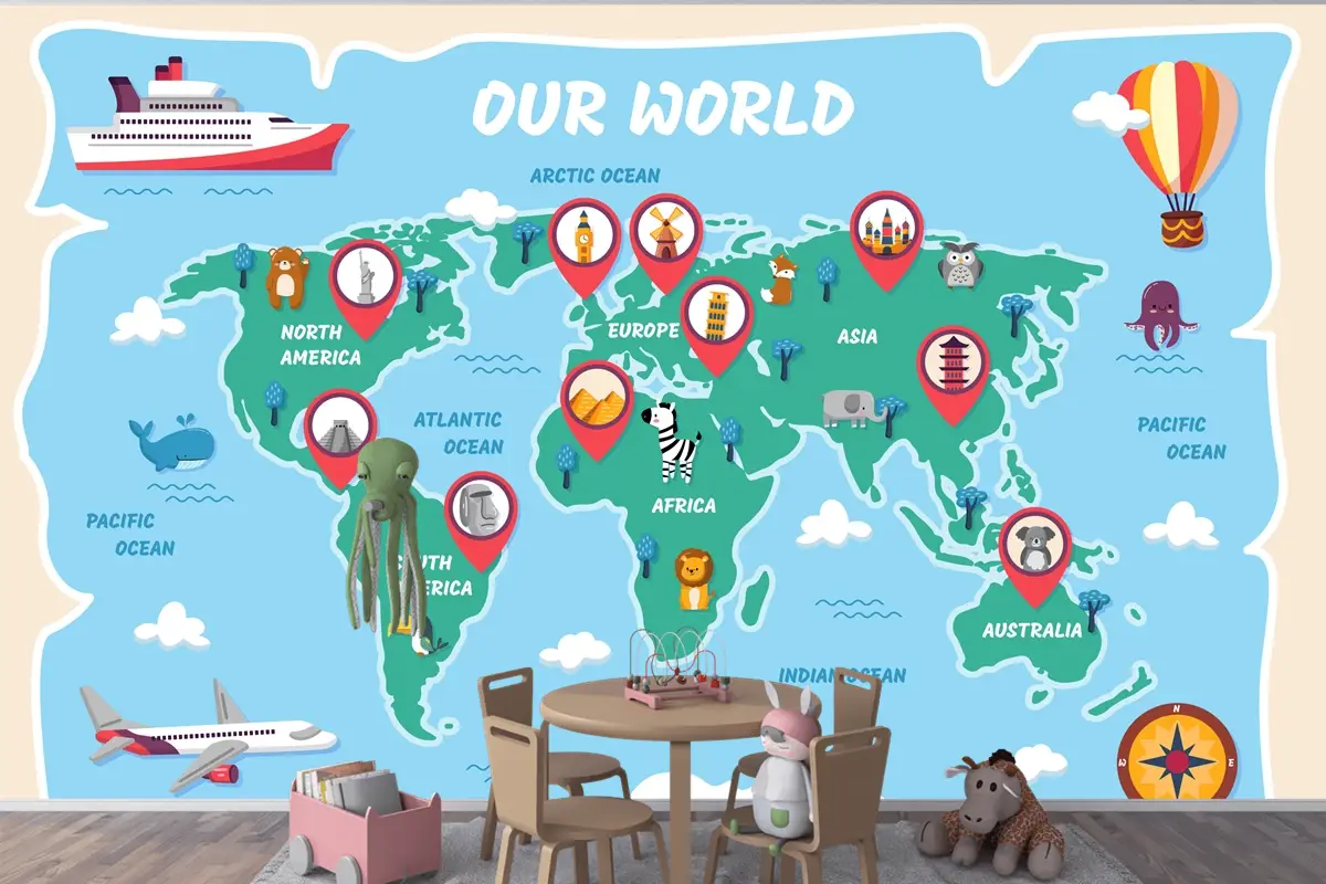 Elle Çizilmiş Çocuk Haritası Çocuk Odası Duvar Kağıdı