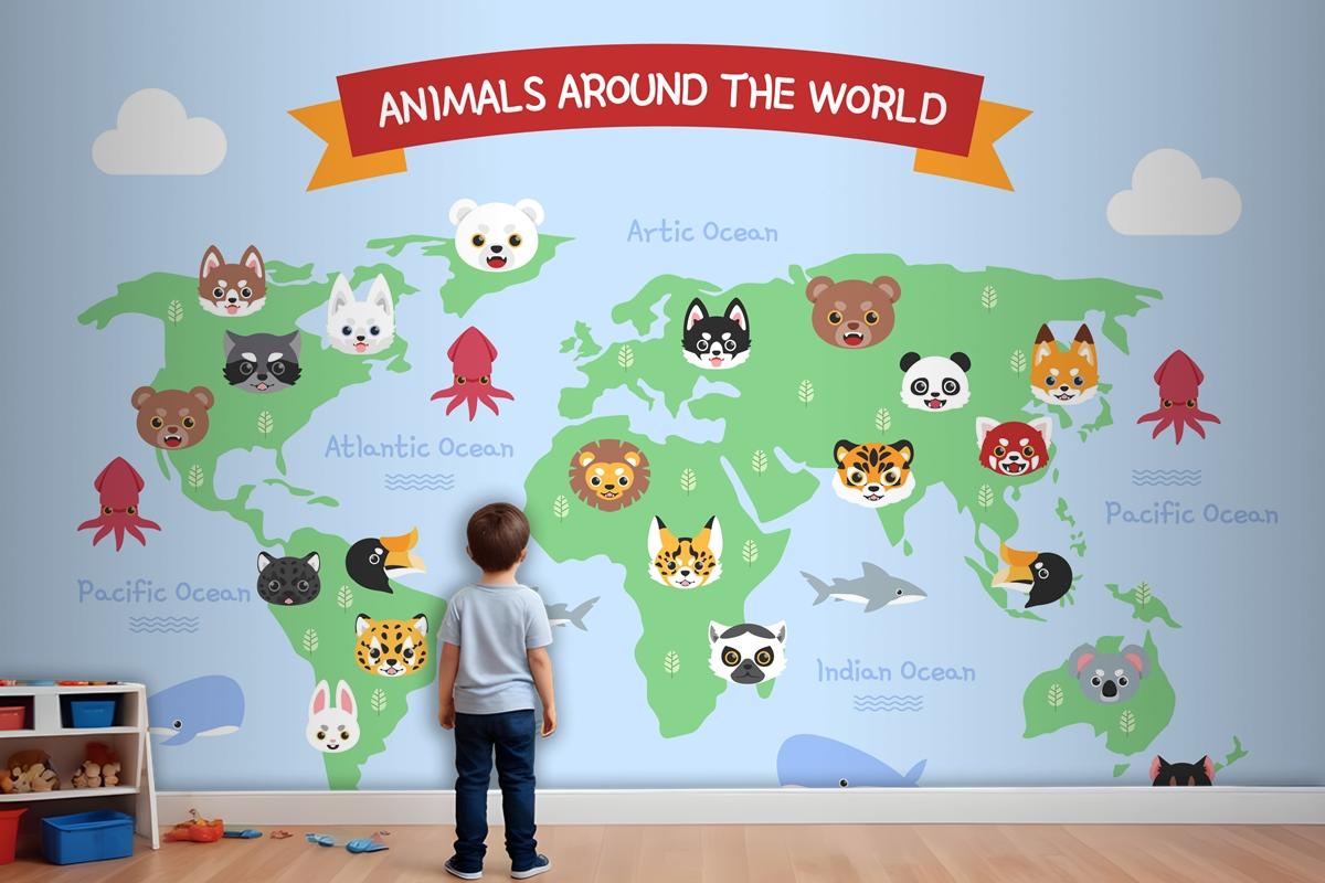 • Elle Çizilmiş Çocuk Haritası Çocuk Odası Duvar Kağıdı