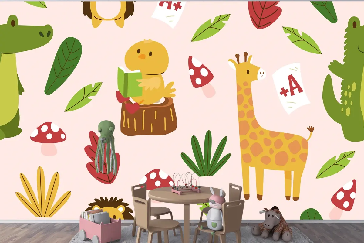 Elle Çizilmiş Çocuksu Hayvanlar Desen Çocuk Odası Duvar Kağıdı