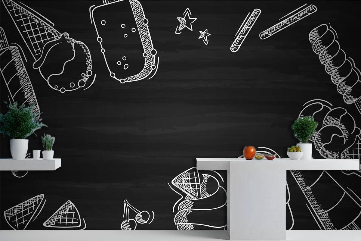 Elle Çizilmiş Dondurma Karatahta Mutfak Duvar Kağıdı