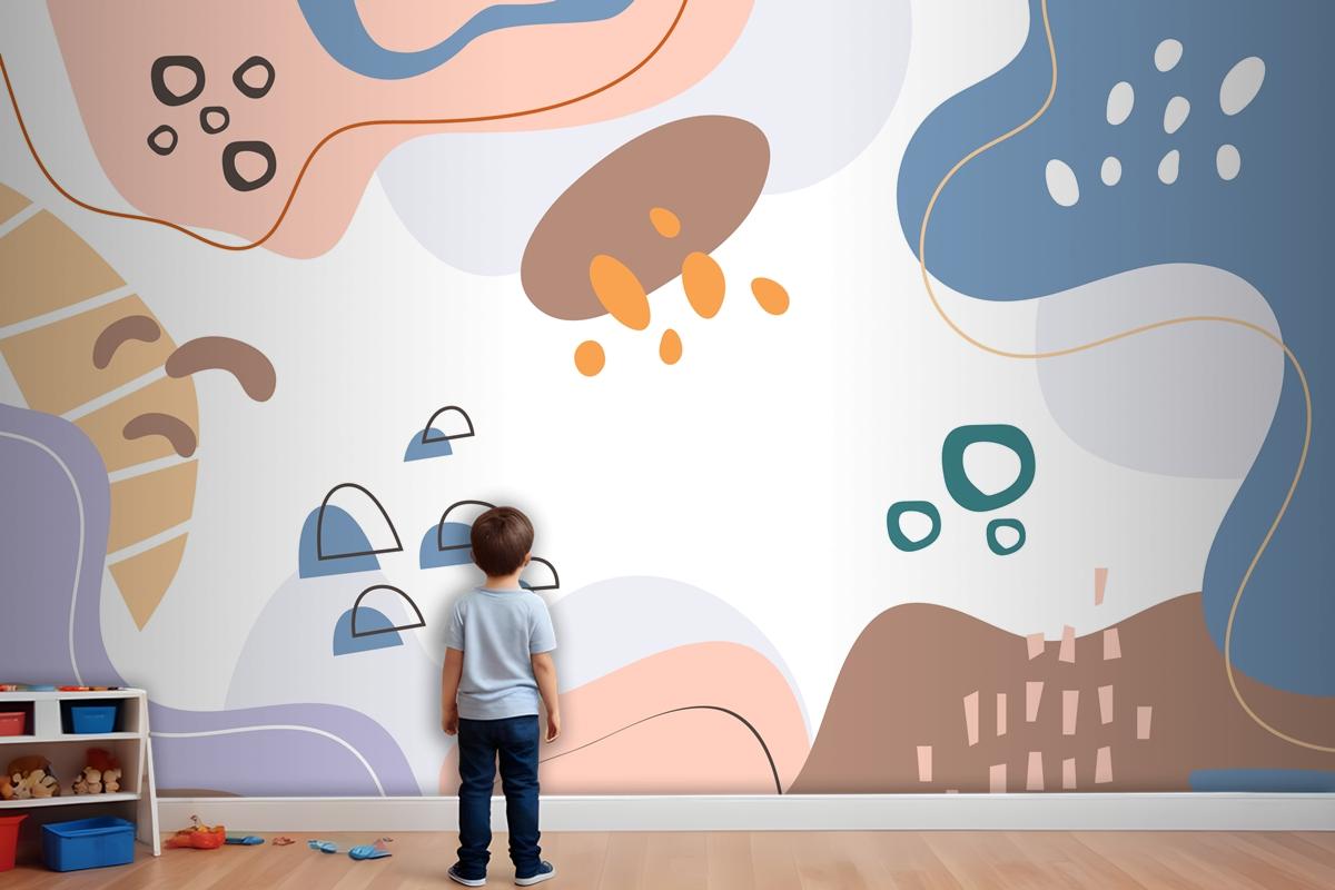 Elle Çizilmiş Düz Tasarım Soyut Doodle Çocuk Odası Duvar Kağıdı
