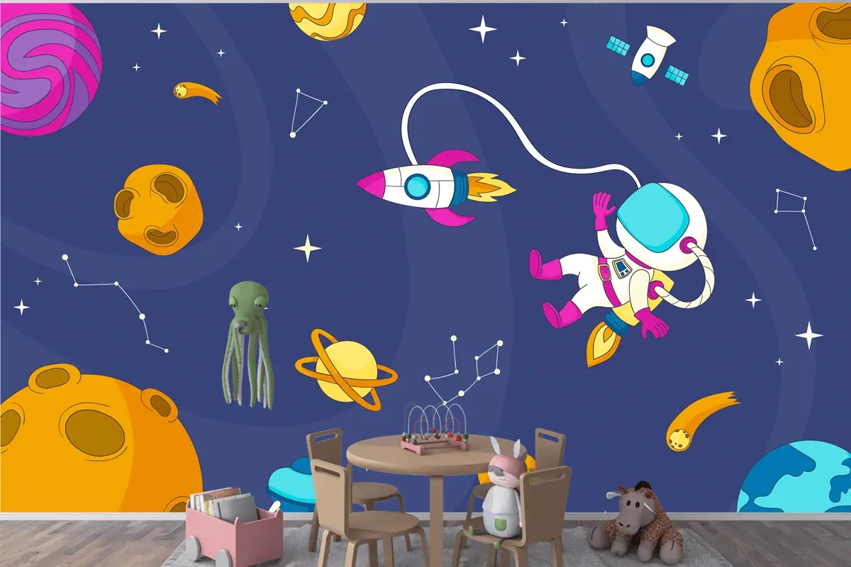 Elle Çizilmiş Galaxy Boys Çocuk Odası Duvar Kağıdı
