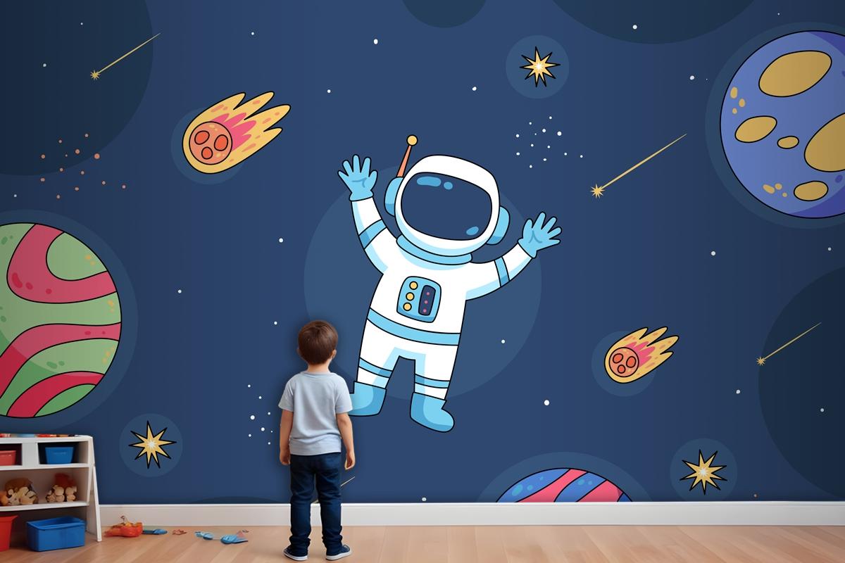 Elle Çizilmiş Galaxy Yıldız Çocuk Odası Duvar Kağıdı