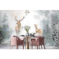 Elle Çizilmiş Geyik Çifti Suluboya Tarzı Yemek Odası Duvar Kağıdı