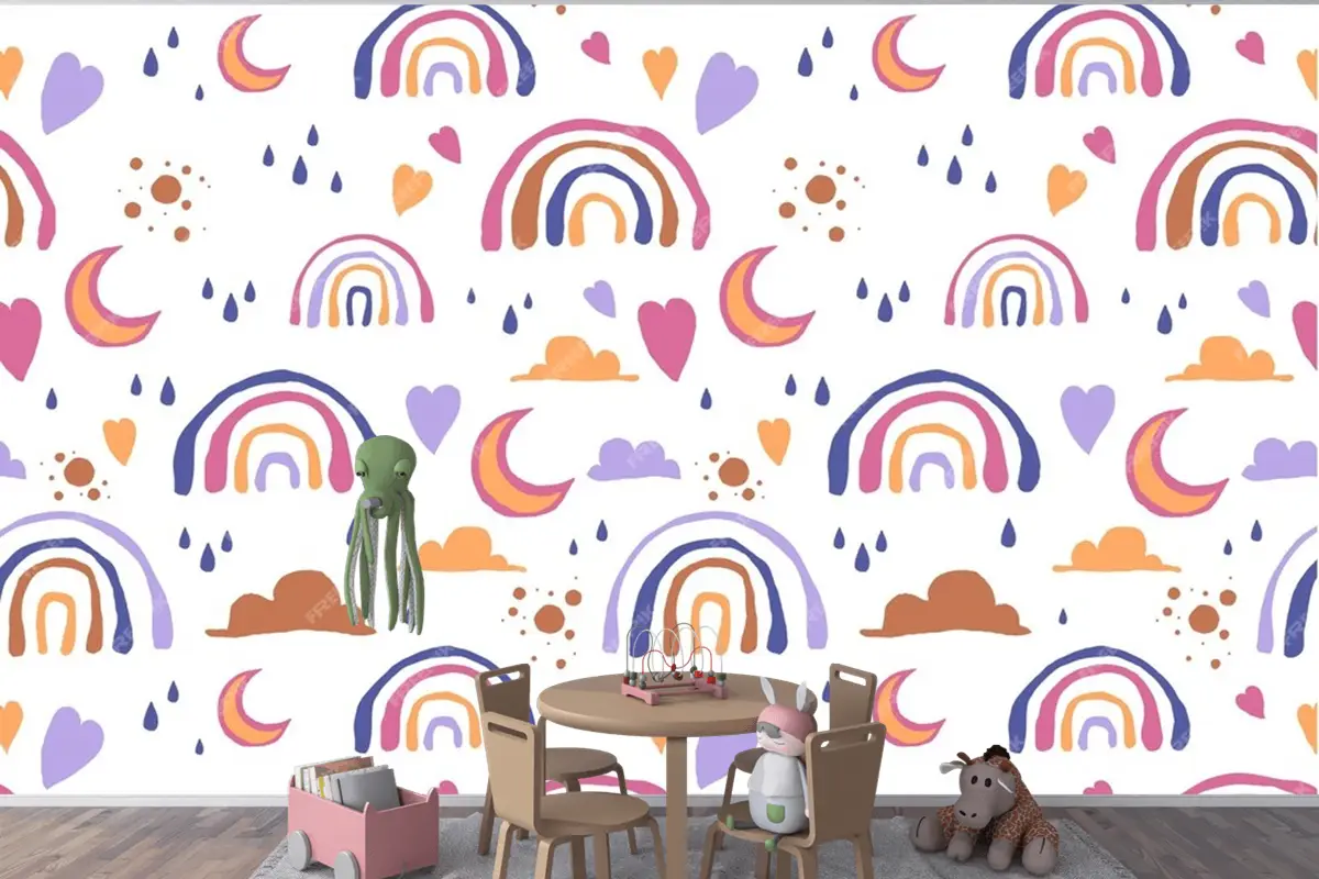 Elle Çizilmiş Gökkuşağı Desen Tasarımı Çocuk Odası Duvar Kağıdı