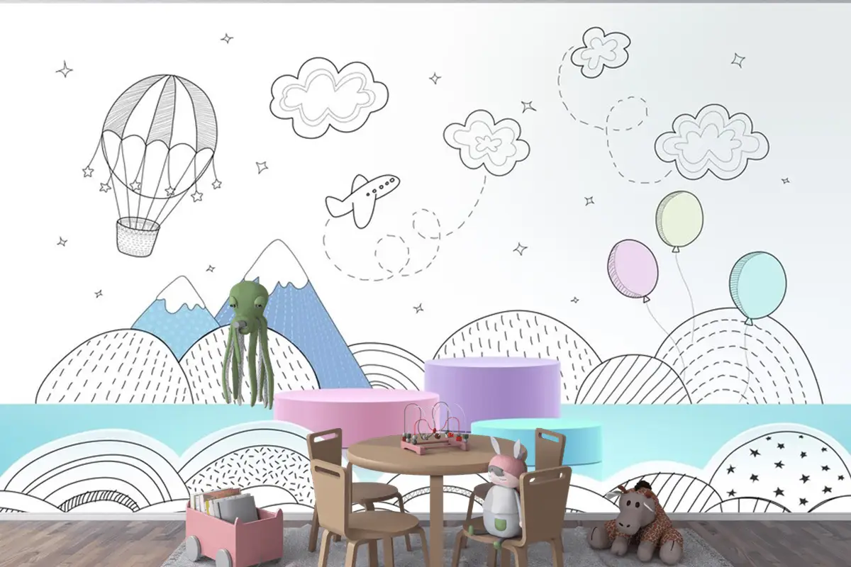 Elle Çizilmiş Hava Durumu Çocuk Odası Duvar Kağıdı Ile Podyum