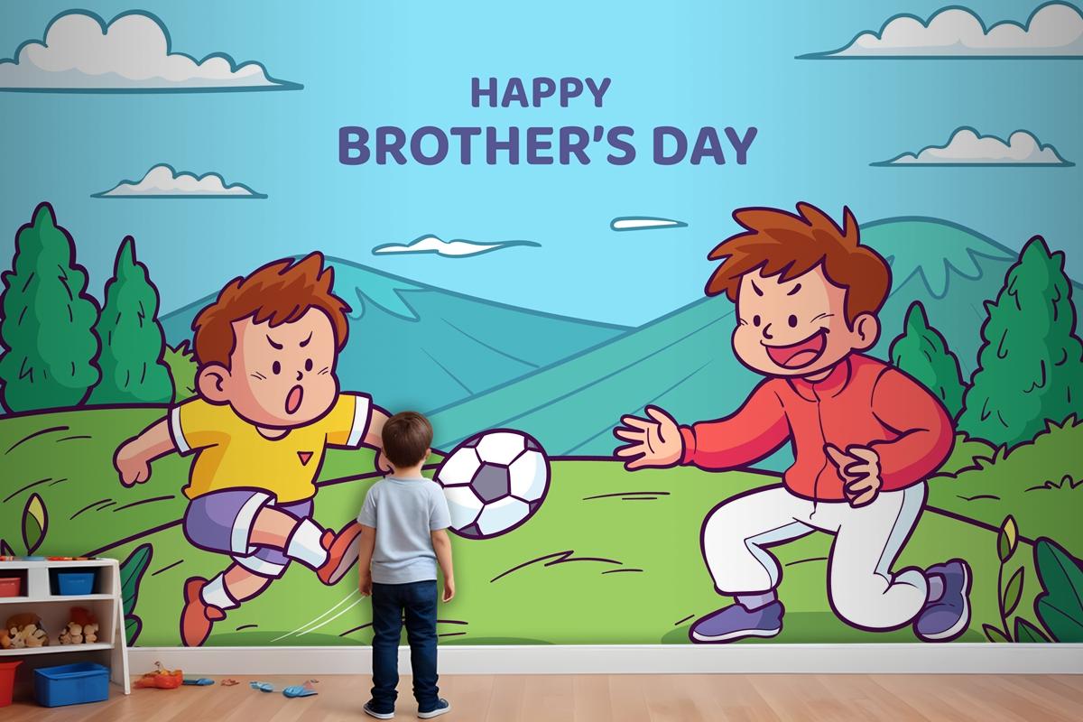 Elle Çizilmiş Kardeşler Günü Çocuk Odası Duvar Kağıdı