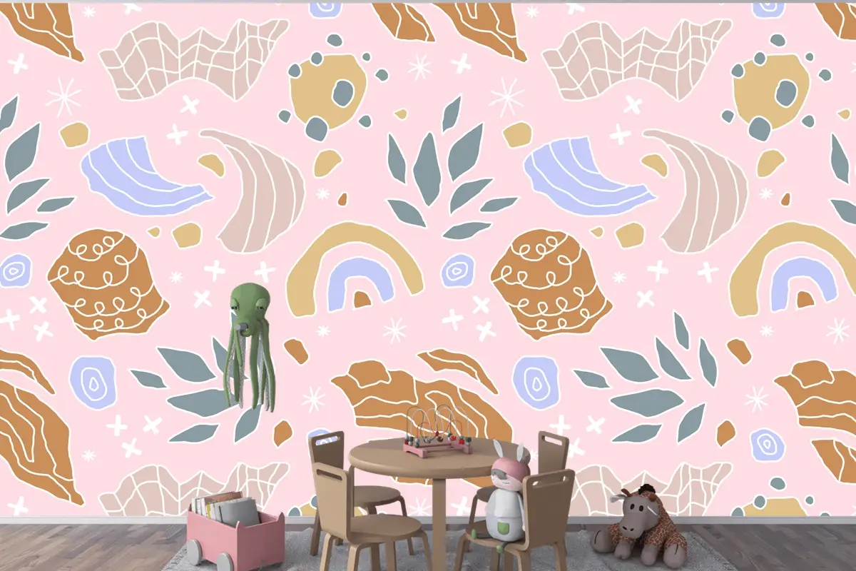 Elle Çizilmiş Kesme Kolaj Desen Çocuk Odası Duvar Kağıdı