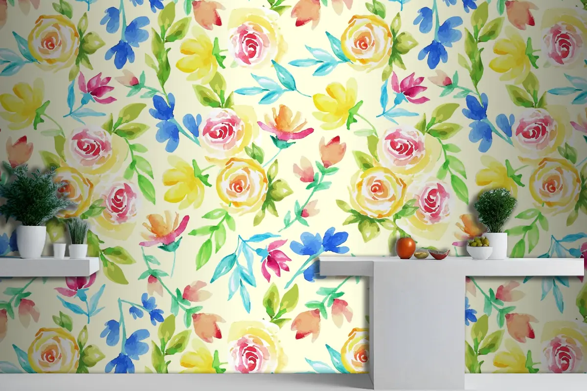 Elle Çizilmiş Küçük Çiçek Desenli Mutfak Duvar Kağıdı