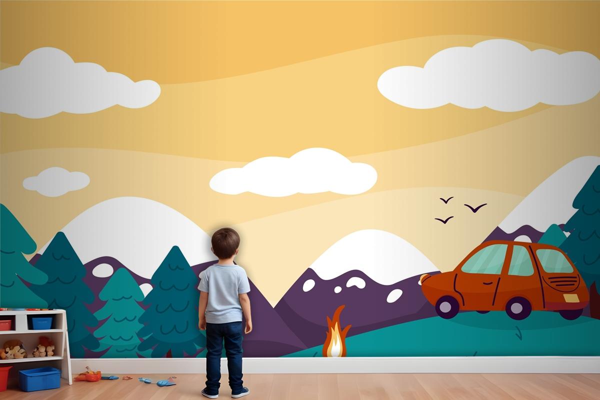 Elle Çizilmiş Macera Arka Plan Çocuk Odası Duvar Kağıdı