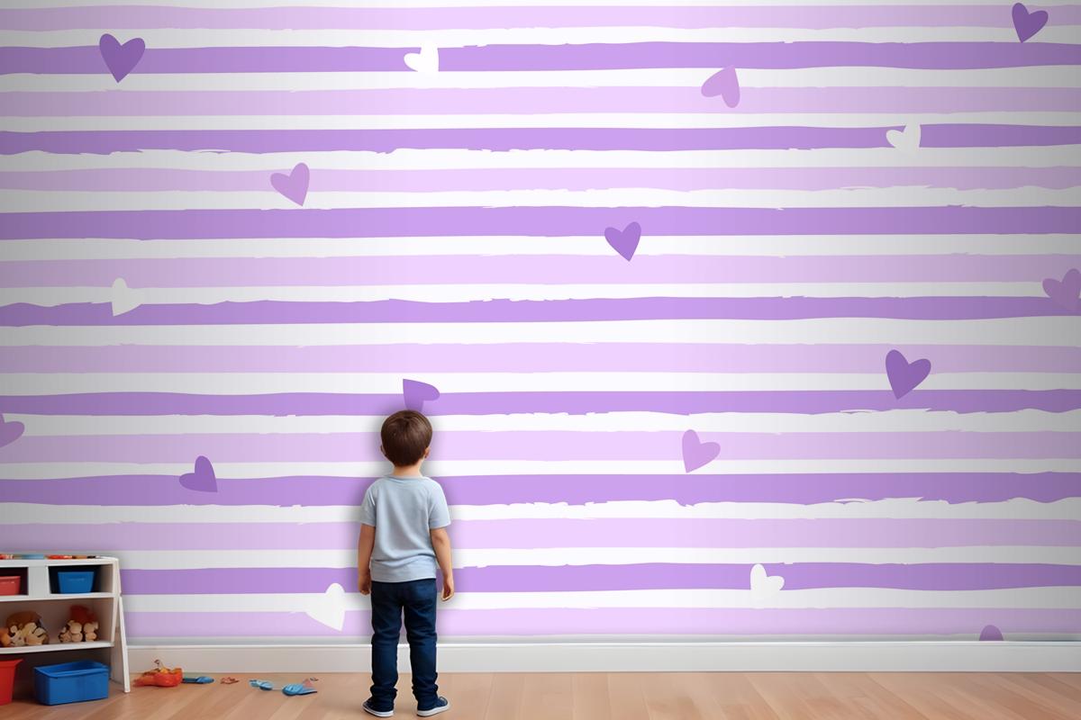 Elle Çizilmiş Mor Çizgili Arka Plan Çocuk Odası Duvar Kağıdı