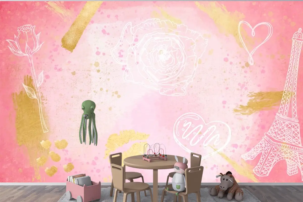 Elle Çizilmiş Öğeler Çocuk Odası Duvar Kağıdı Ile Suluboya Arka Plan