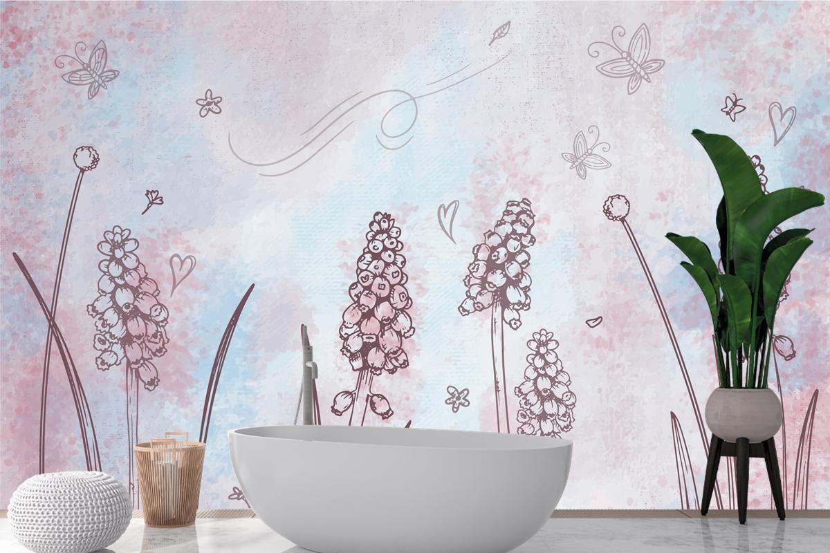 Elle Çizilmiş Öğelerle Suluboya Arka Plan Banyo Duvar Kağıdı