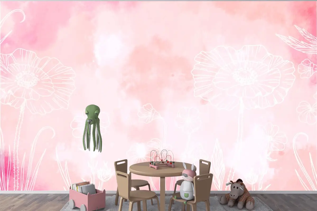 Elle Çizilmiş Öğelerle Toz Pastel Çocuk Odası Duvar Kağıdı