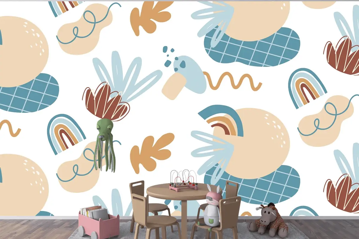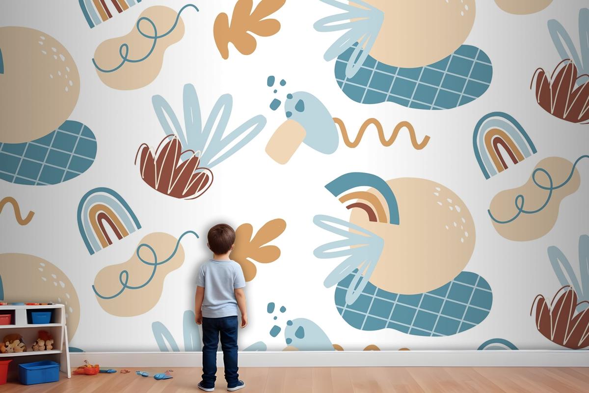 Elle Çizilmiş Soyut Öğe Desen Çocuk Odası Duvar Kağıdı