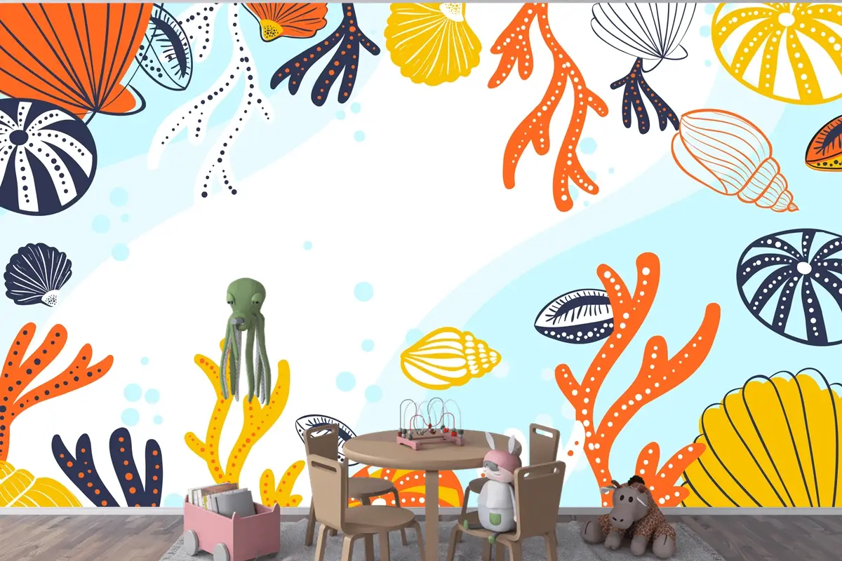 Elle Çizilmiş Su Arka Plan Çocuk Odası Duvar Kağıdı