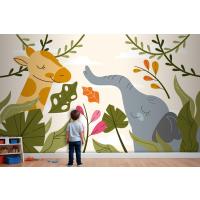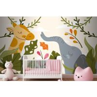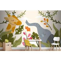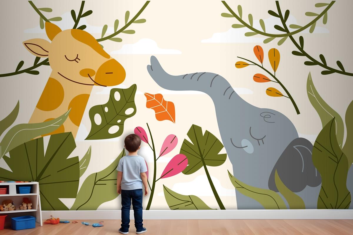 • Elle Çizilmiş Yaban Hayatı Arka Plan Çocuk Odası Duvar Kağıdı