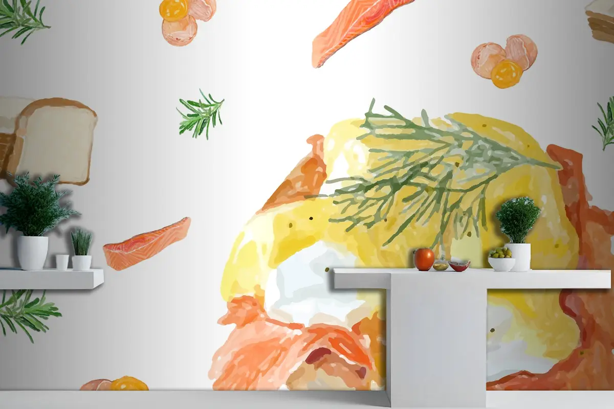 Elle Çizilmiş Yumurta Benedik Suluboya Tarzı Mutfak Duvar Kağıdı