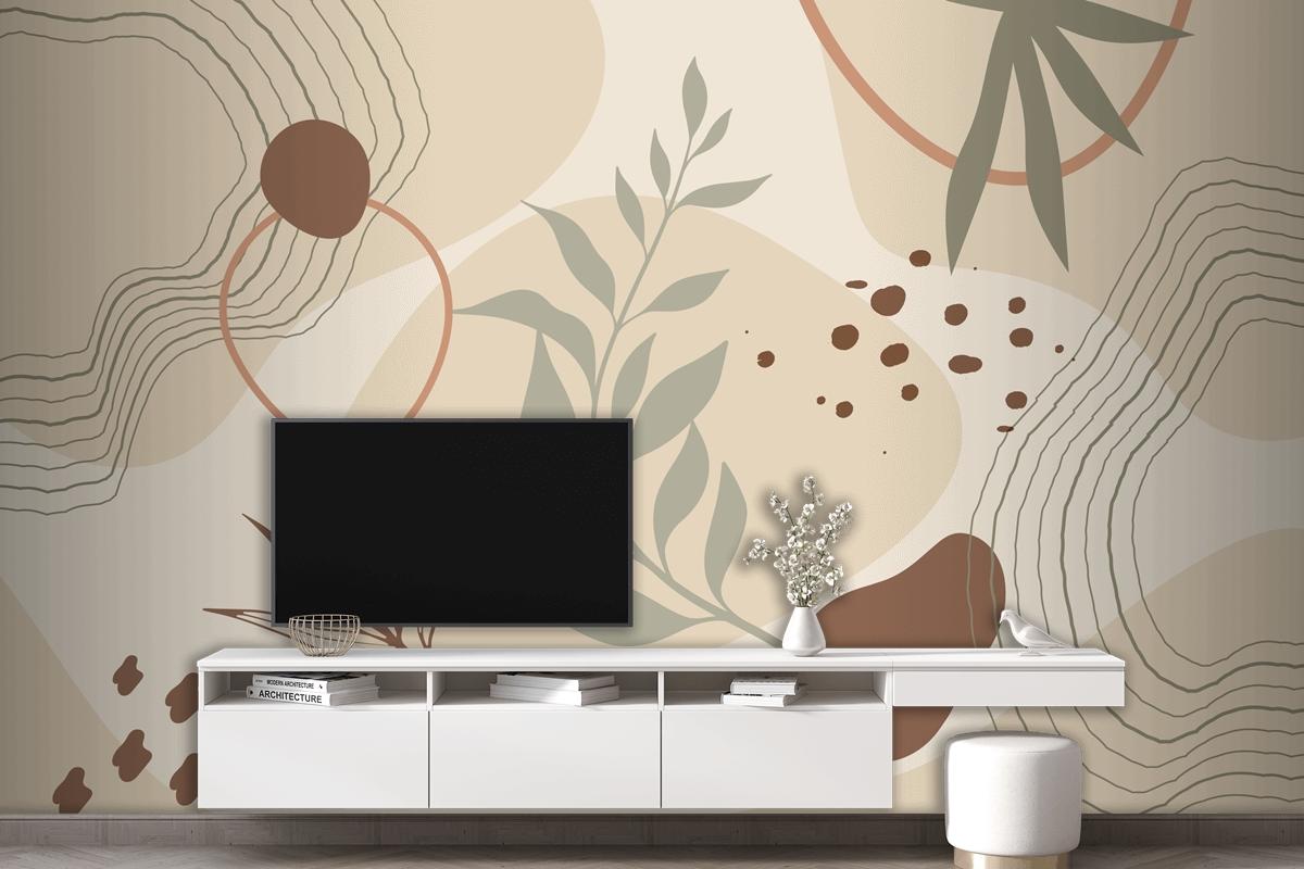 Elle Çizilmiş Yumuşak Toprak Tonları Oturma Odası Duvar Kağıdı