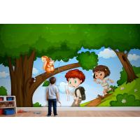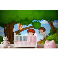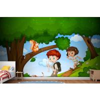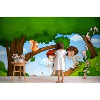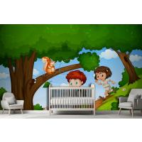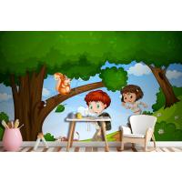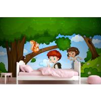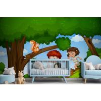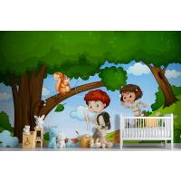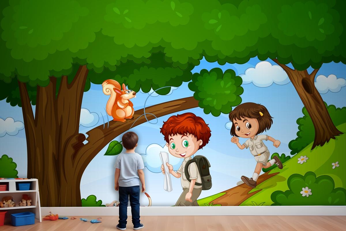 Erkek Ve Kız Sevimli Hayvan Sahnesi Çocuk Odası Duvar Kağıdı Yle Parkta Keyfini Çıkarıyor