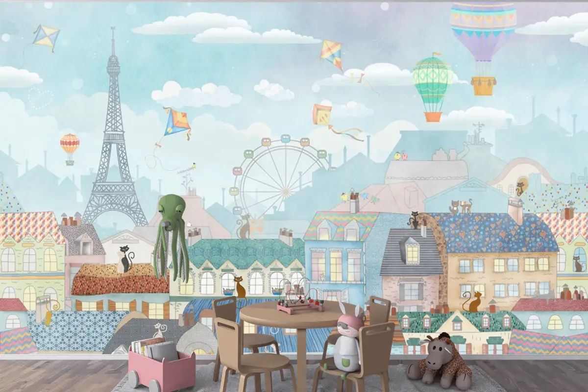 Eski Paris Suluboya Çocuk Odası Duvar Kağıdı