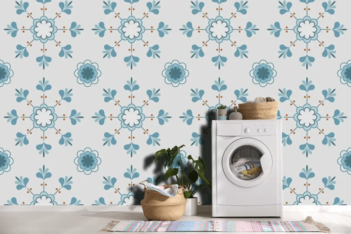 Fayans Dokulu Desen Tasarımı Çamaşır Odası Duvar Kağıdı
