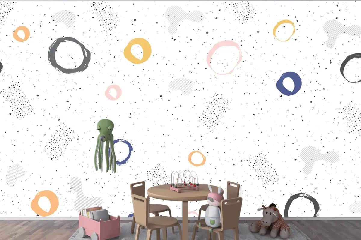 Fırça Dairesel Kontur Suluboya Çocuk Odası Duvar Kağıdı