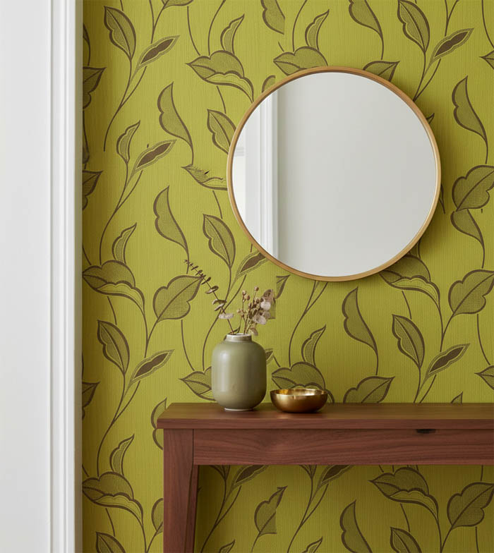 Fıstık Yeşili Yaprak Desen Ucuz Duvar Kağıdı 763546