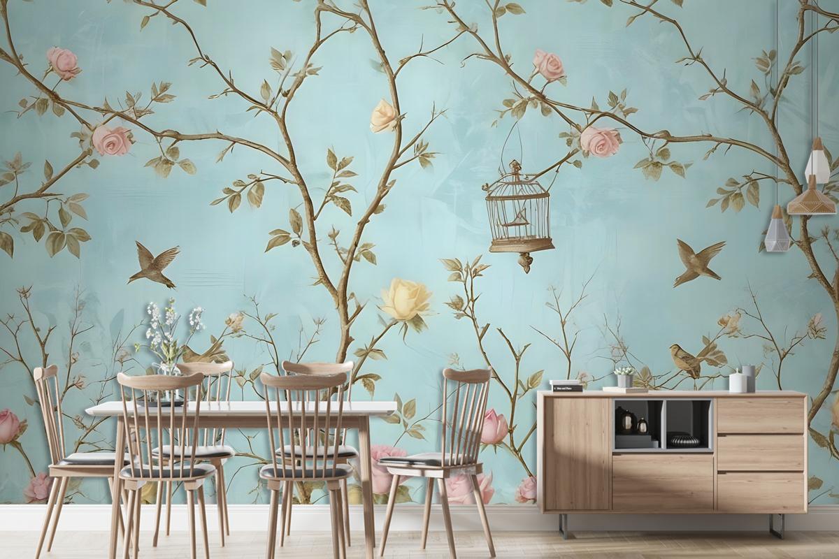 Fotoğraf Duvar Kağıdı İçin Küçük Çiçekler Ve Kuşlar