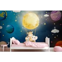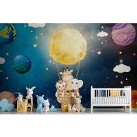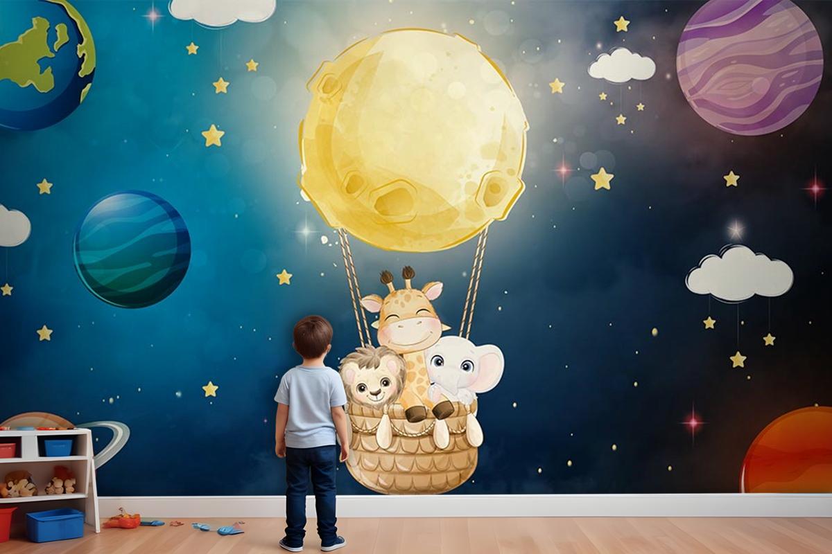Galaksi Gezegenler Ve Sevimli Hayvanlar Çocuk Odası Duvar Kağıdı