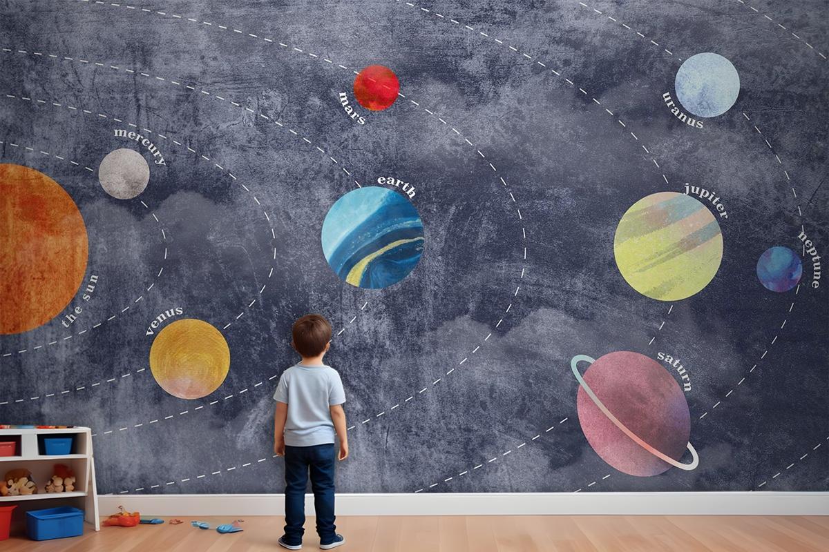 Galaksi Gezegenler Ve Uzay Çocuk Odası Duvar Kağıdı