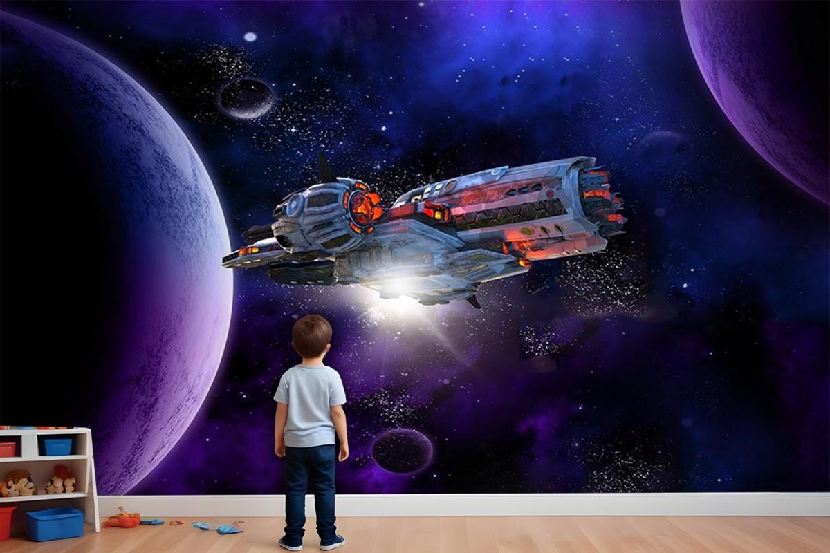 Galaksi Ve Uzay Gemisi Çocuk Odası Duvar Kağıdı