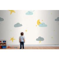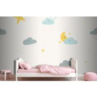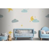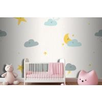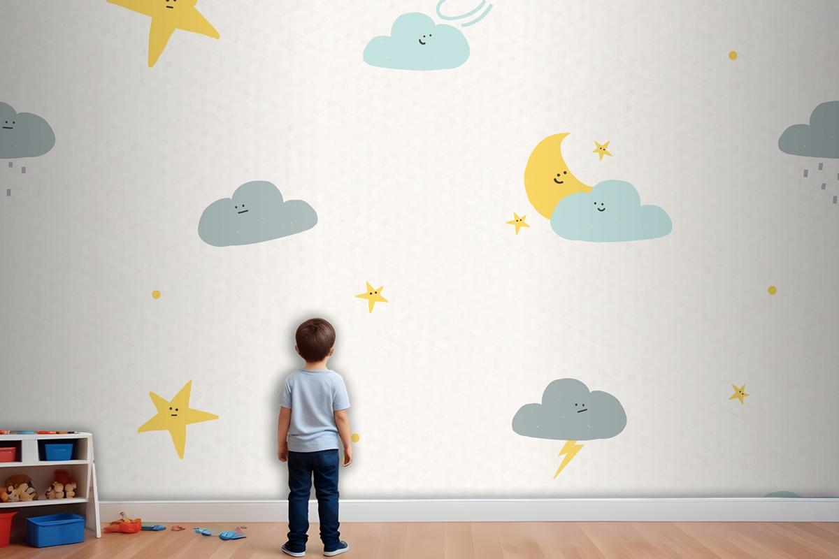 Gece Gökyüzü Dikişsiz Desen Hava Durumu Doodle Çocuk Odası Duvar Kağıdı