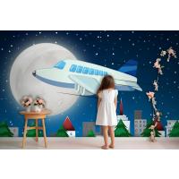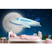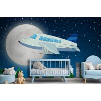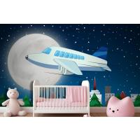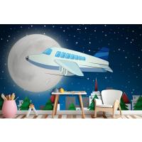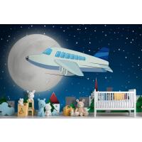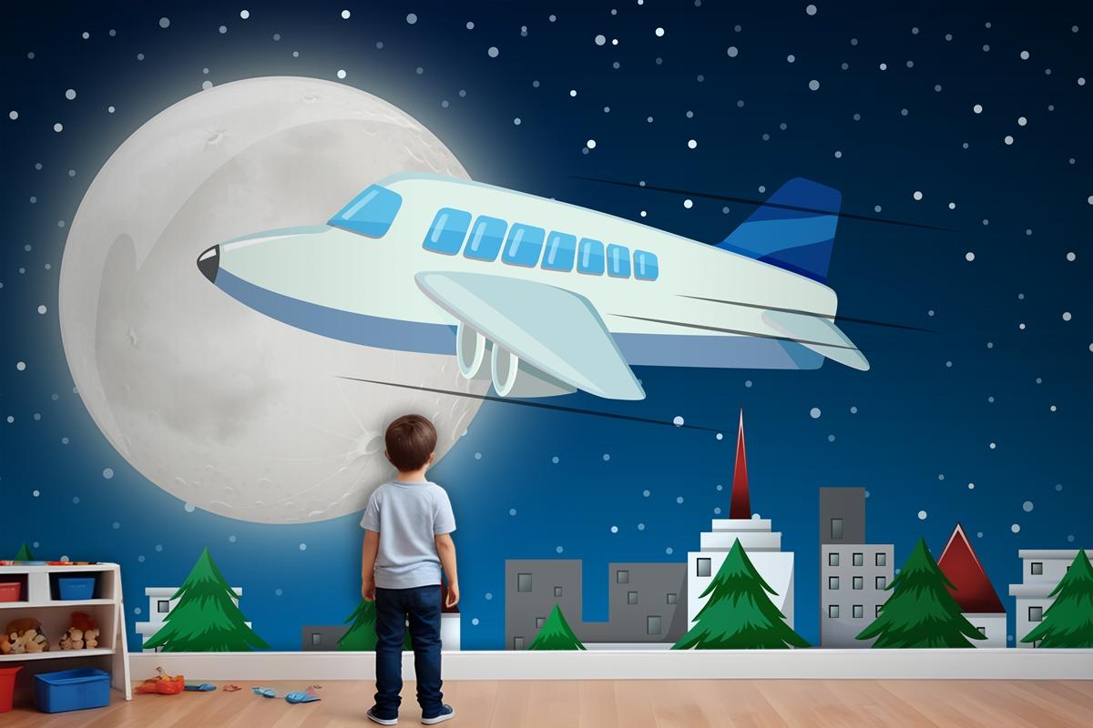Gece Gökyüzünde Uçan Uçak Çocuk Odası Duvar Kağıdı