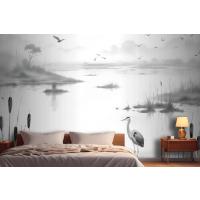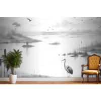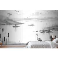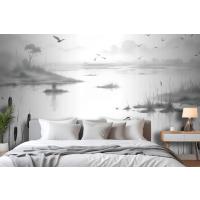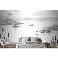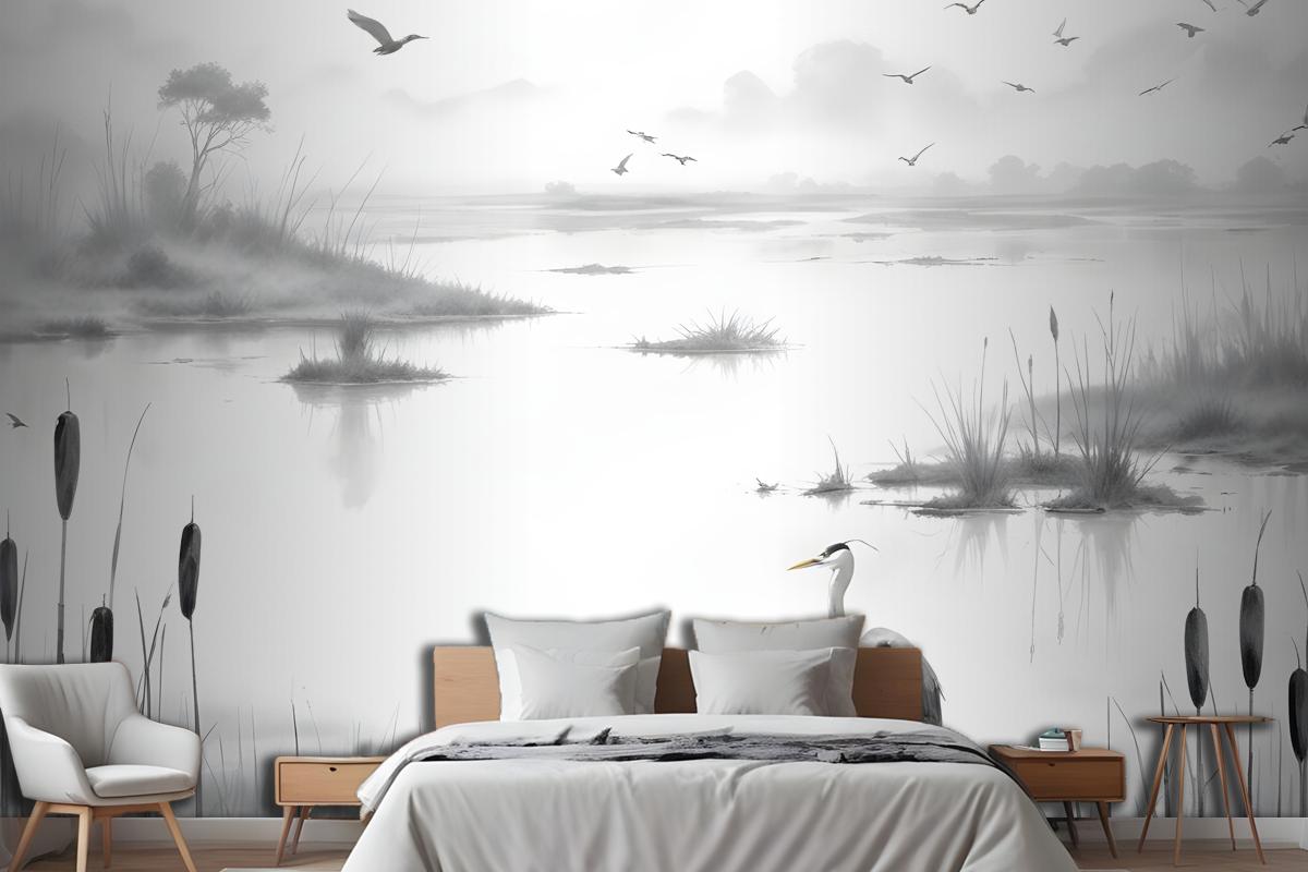 Geleneksel Çin Siyah & Beyaz Mürekkep Gölü Yatak Odası Duvar Kağıdı