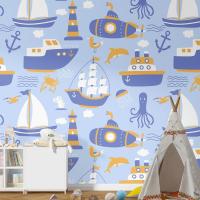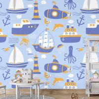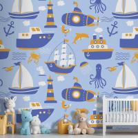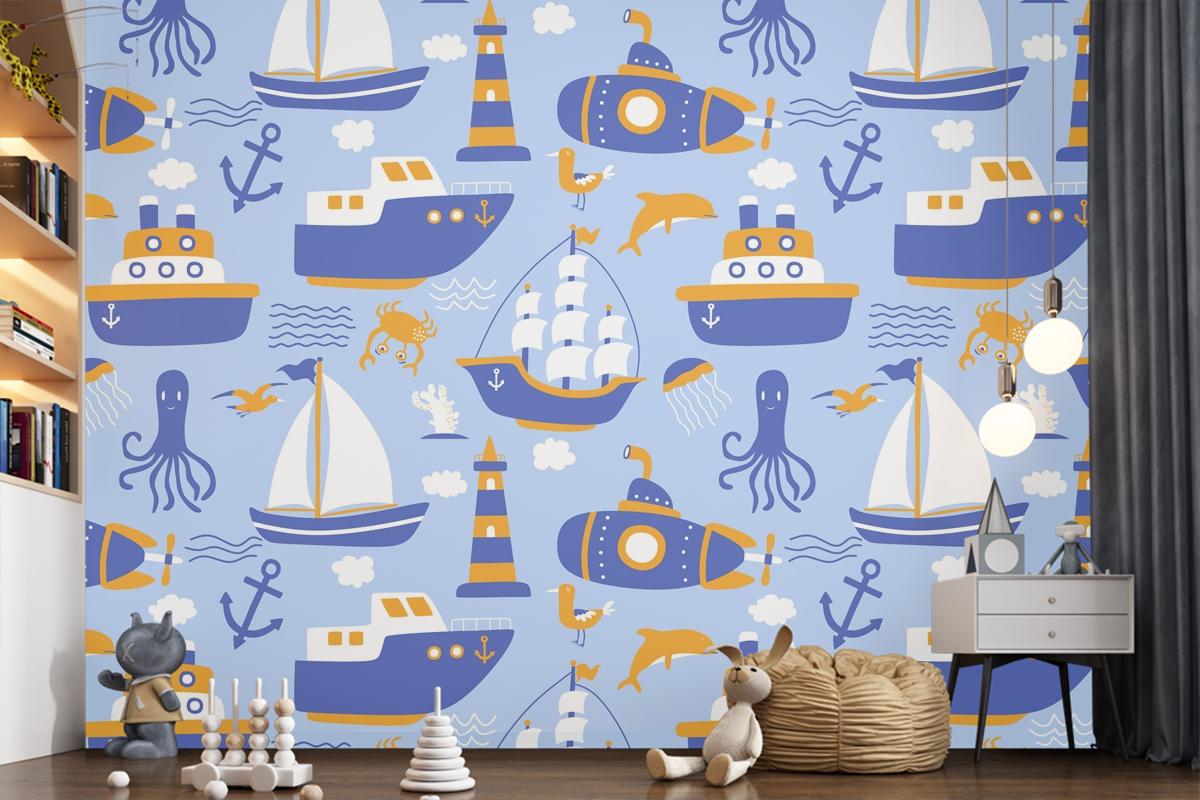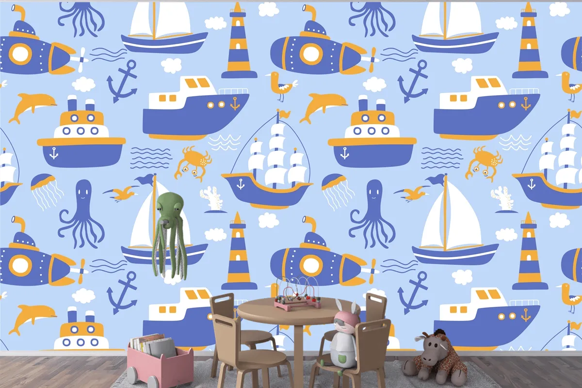 Gemiler Ile Seamless Modeli Çocuk Odası Duvar Kağıdı