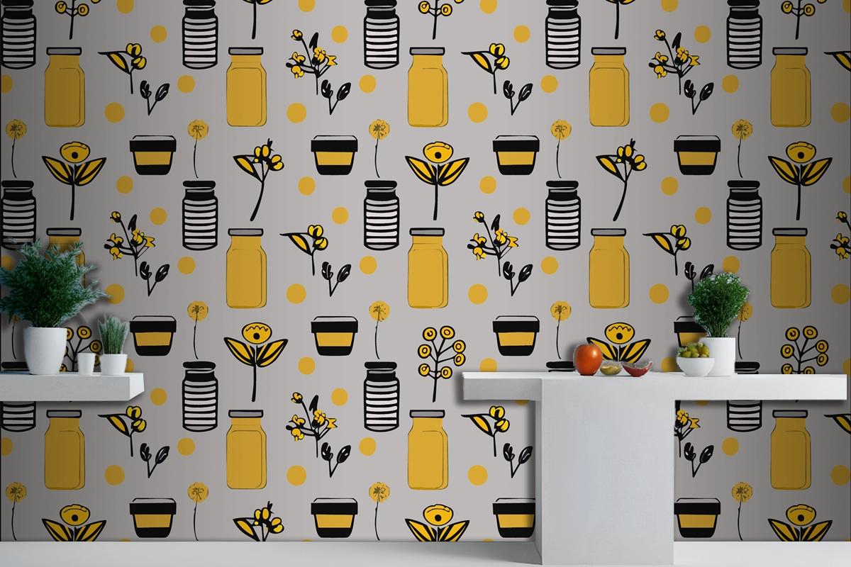 Geometrik Gıda Hattı Deseni Doğal Çiçek Bitki Basit Şekil Soyut Ekolojik Tarım Konsepti Mutfak Duvar Kağıdı