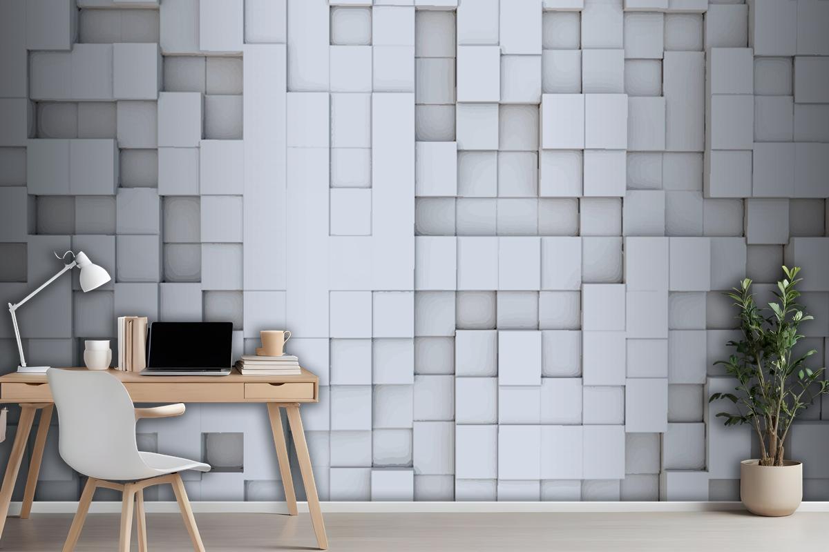 Gerçekçi 3D Kareler Geometrik Ofis Duvar Kağıdı