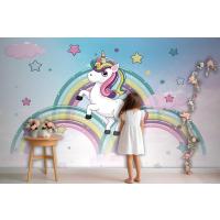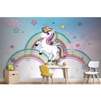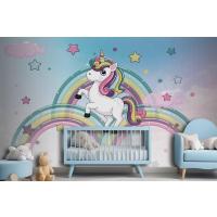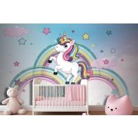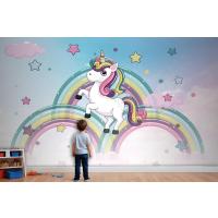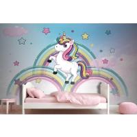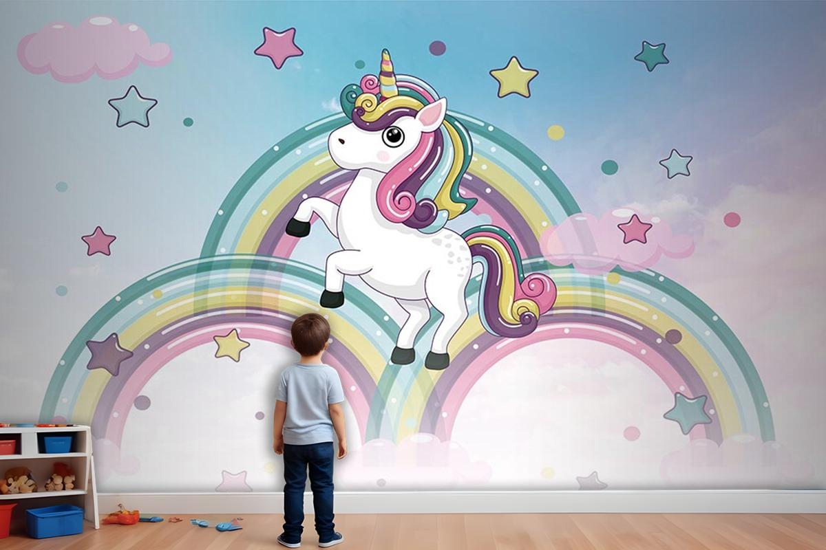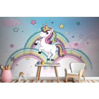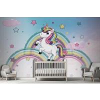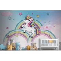 Gökkuşakları Üzerinde Unicorn Çocuk Odası Duvar Kağıdı