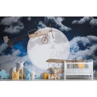 Gökyüzünde Ay Ve Uçaklar Çocuk Odası Duvar Kağıdı