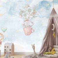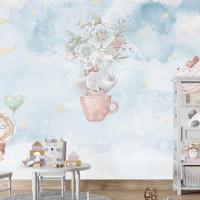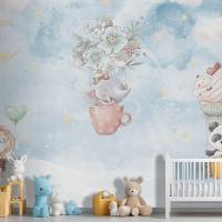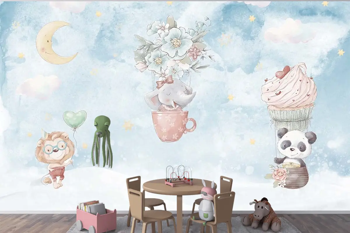 Gökyüzünde Fil Panda Çocuk Odası Duvar Kağıdı