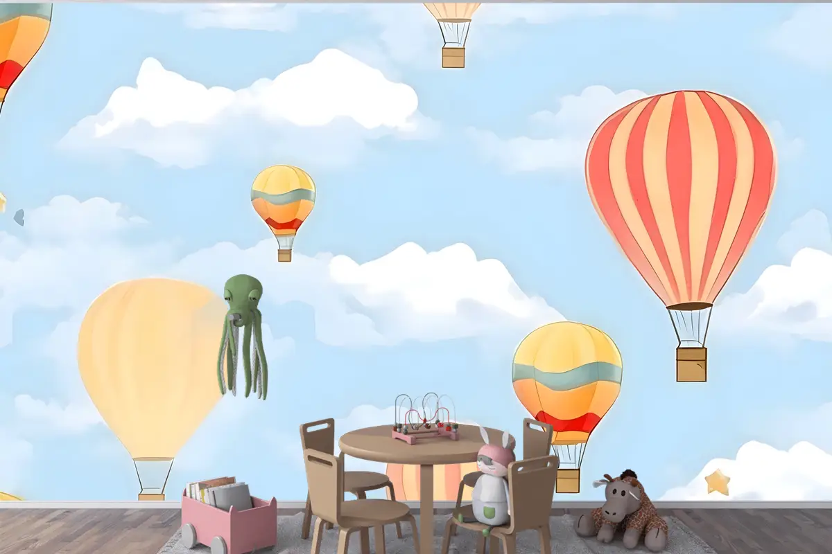 Gökyüzünde Sıcak Hava Balonları Ile Dikişsiz Desen Çocuk Odası Duvar Kağıdı