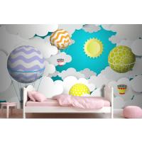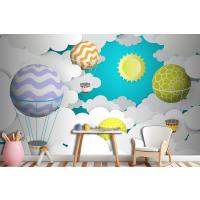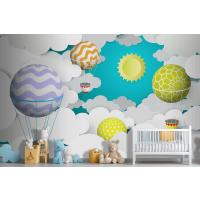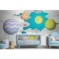 Gökyüzünde Sıcak Hava Balonları Kağıt Sanat Tarzı Çocuk Odası Duvar Kağıdı