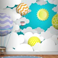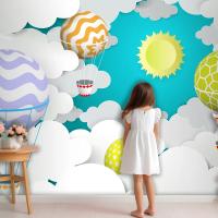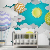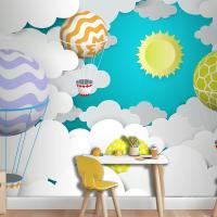 Gökyüzünde Sıcak Hava Balonları Kağıt Sanat Tarzı Çocuk Odası Duvar Kağıdı