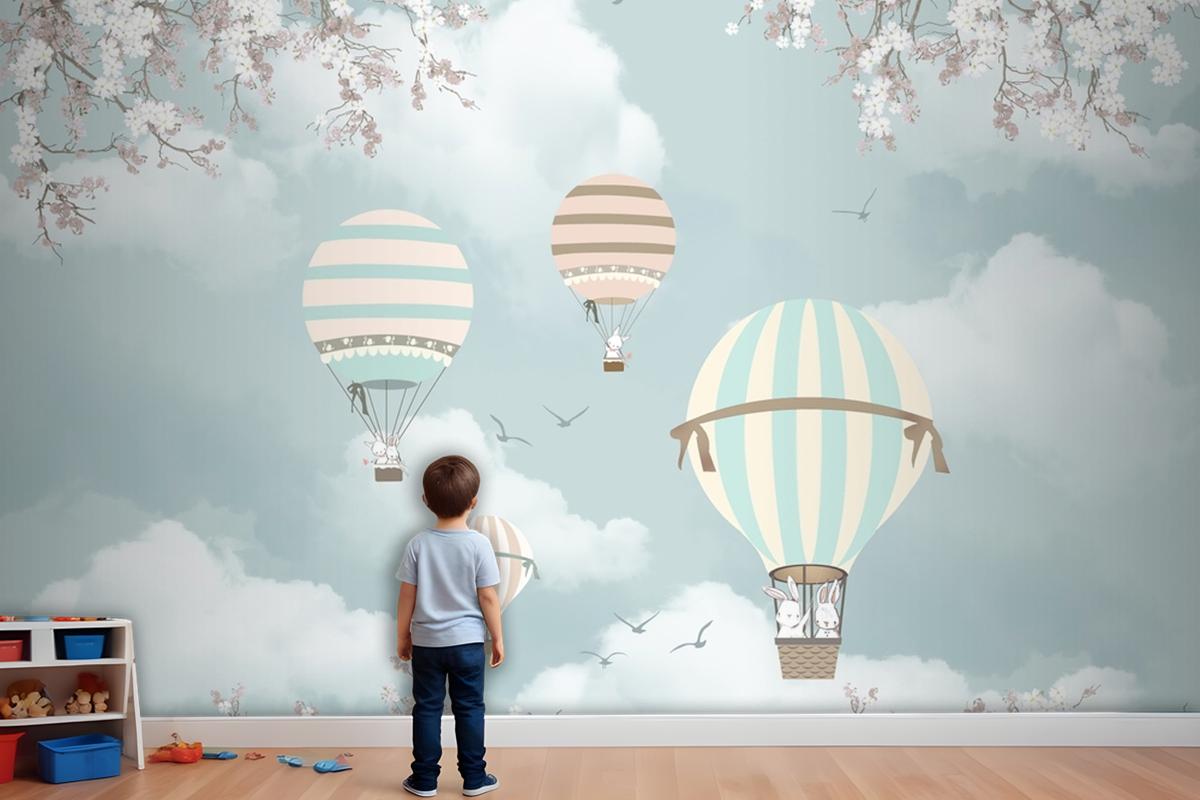 Gökyüzündeki Balonlar Ve Uçaklar Çocuk Odası Duvar Kağıdı