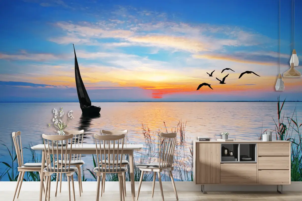 Göl Kenarında Gün Batımı Manzarası Duvar Kağıdı