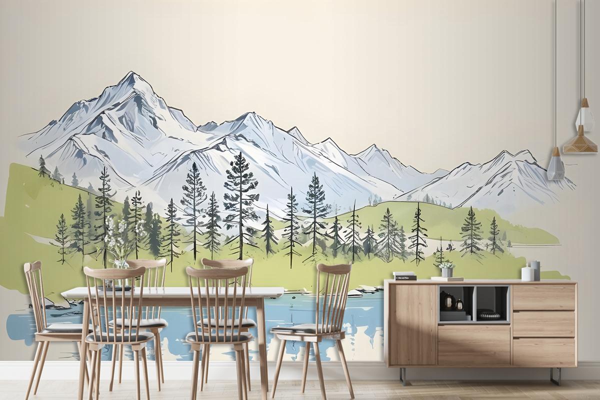 Göl Ve Çam Ağaçları Ile Kömür Dağ Manzarası Duvar Kağıdı