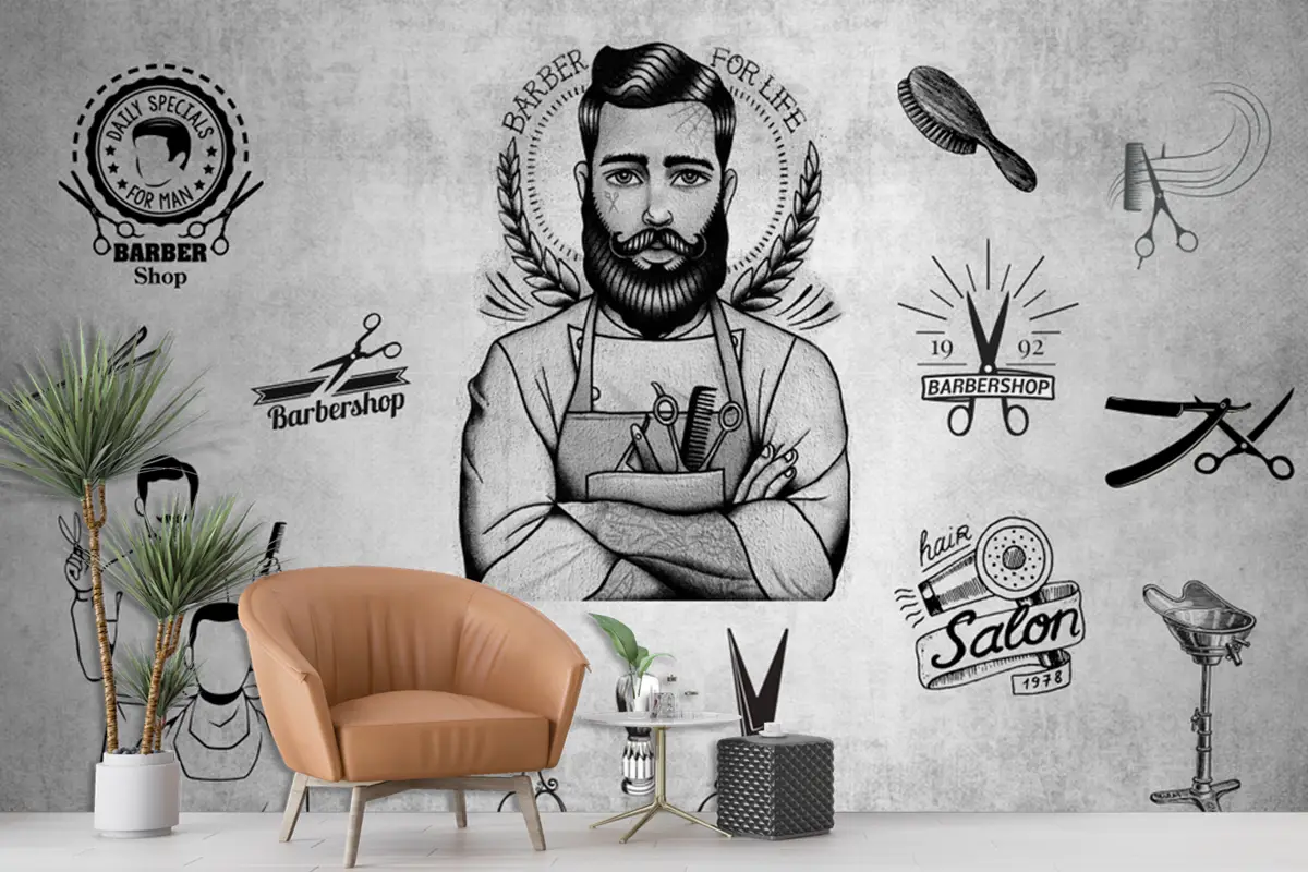 Gri Arka Plan Berber Aletleri Duvar Kağıdı