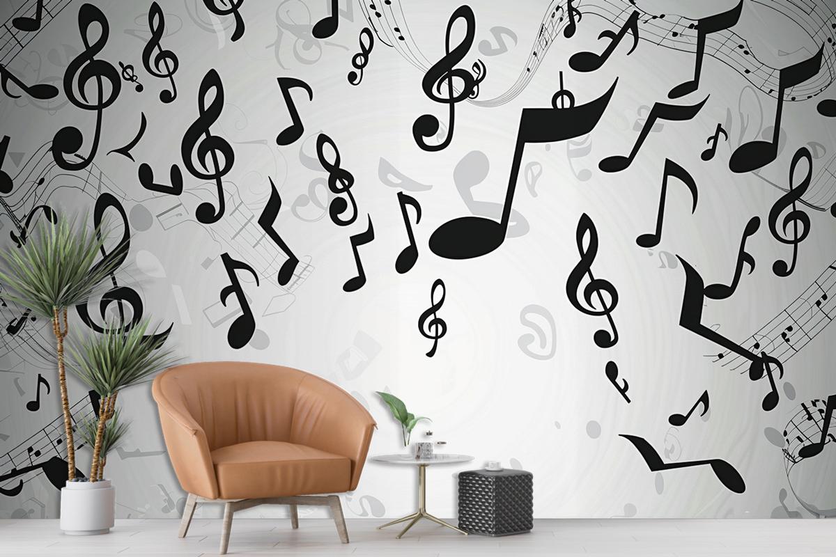 Gri Arka Plan Müzik Notaları Duvar Kağıdı