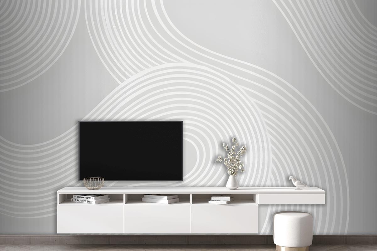 Gri Kıvrımlı Çizgiler Modern Zen Bahçesi Oturma Odası Salon Duvar Kağıdı